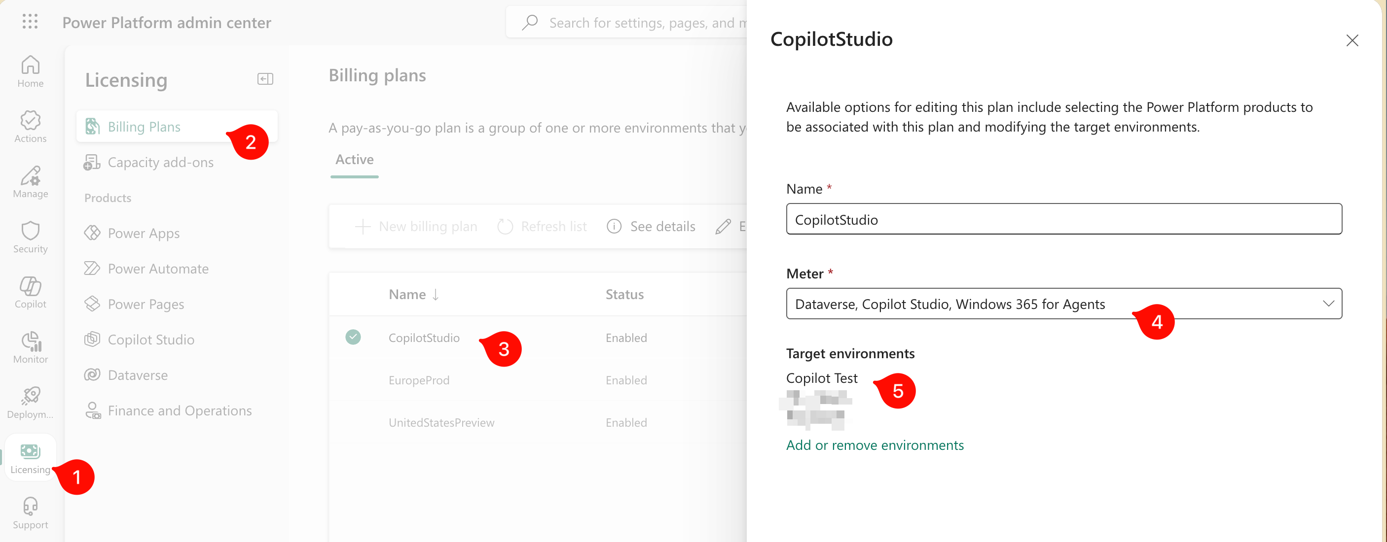 Open the billing plan you want to use (e.g., the one tied to Copilot Studio).